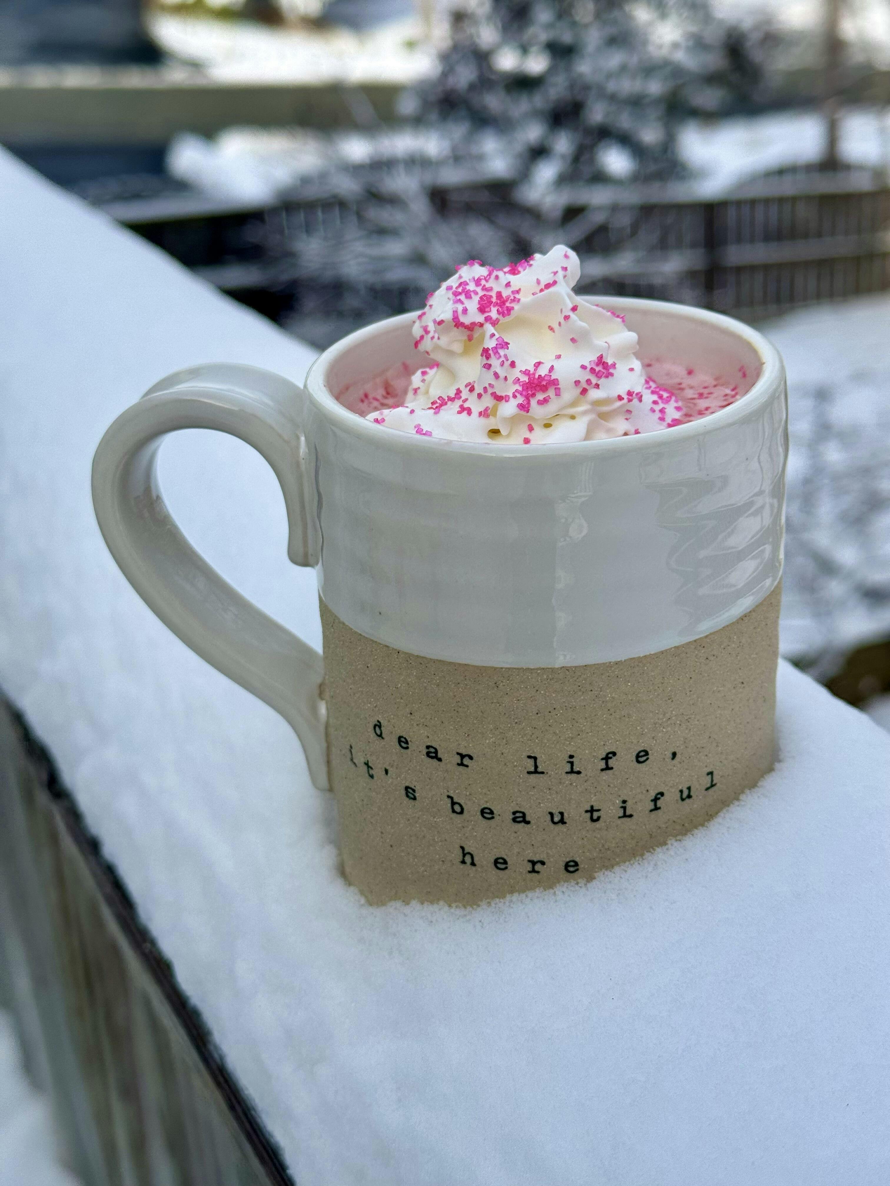 Drink Pink is B-Cups Coffee's very own classic white hot chocolate. Enjoy the comforting warmth and delightful strawberry sweetness of this decadent drink.